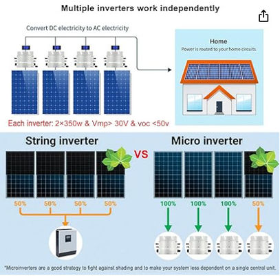 อินเวอร์เตอร์ขนาดเล็กทํางานตามแพนลล์ เพื่อให้สามารถปรับปรุงผลผลิตของแพนลล์แสงอาทิตย์แต่ละแผ่นได้แม้ว่าแผ่นบางแผ่นจะมีเงาหรือได้รับผลกระทบจากปัจจัยสิ่งแวดล้อมต่าง ๆ.